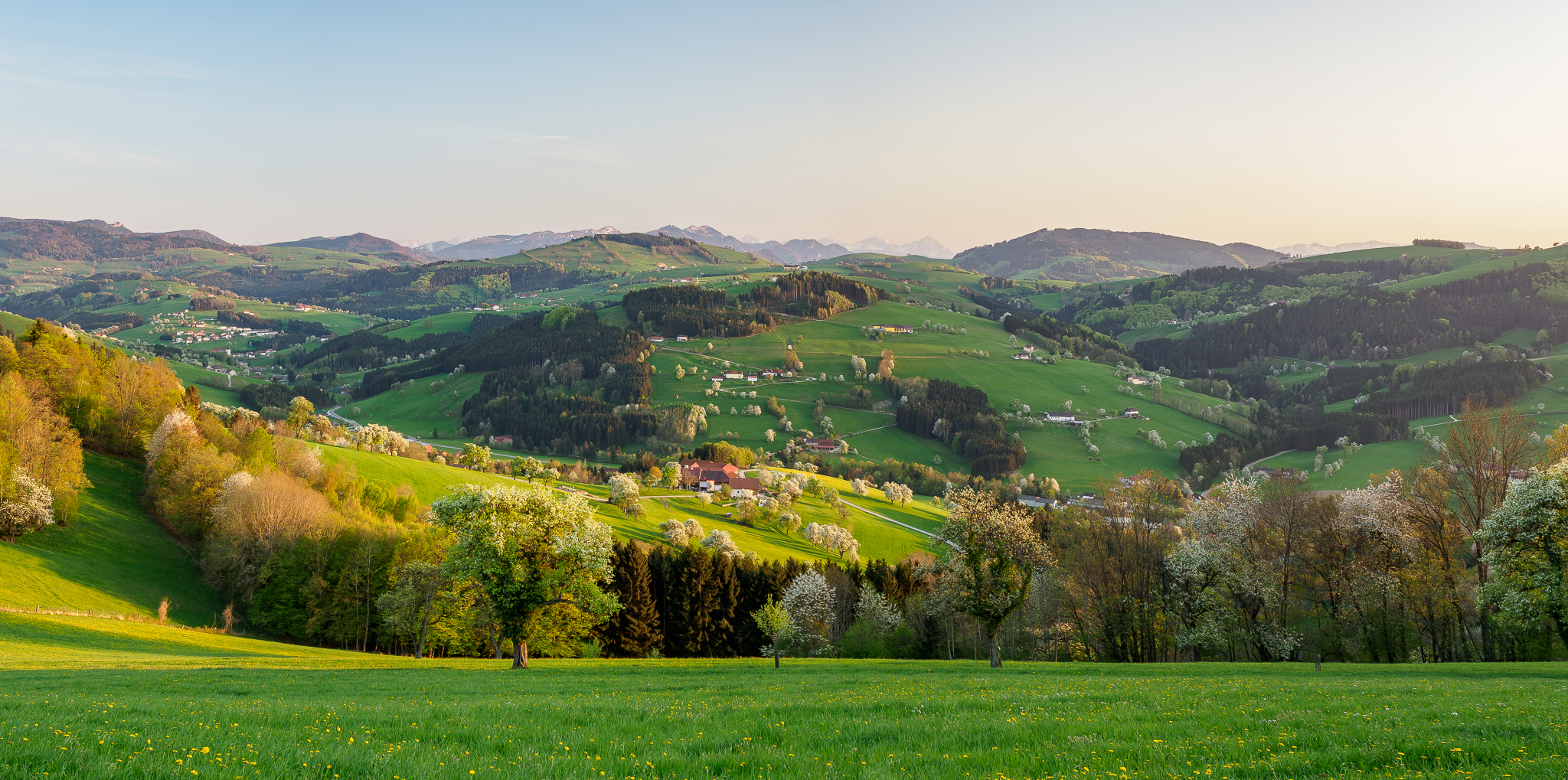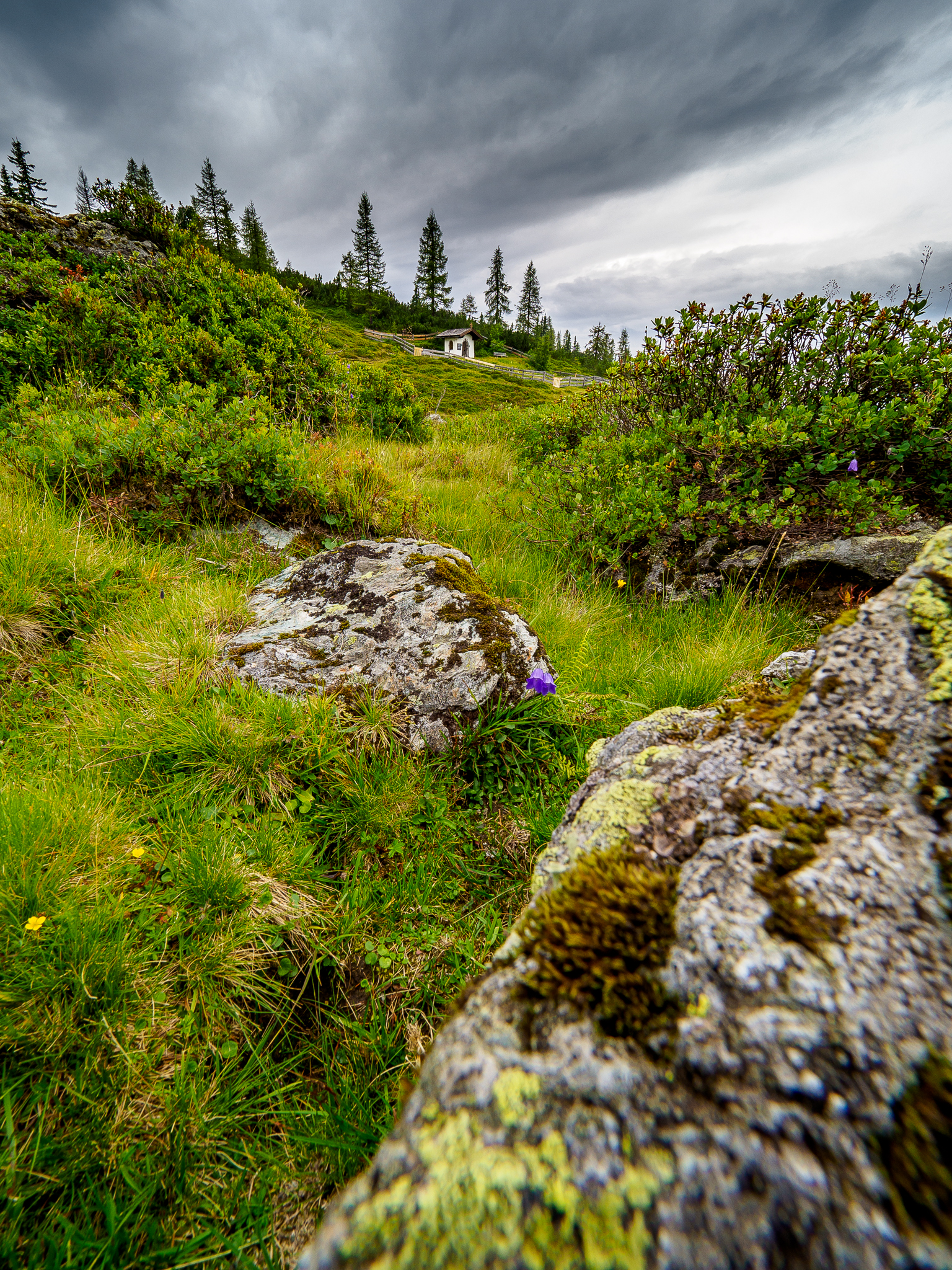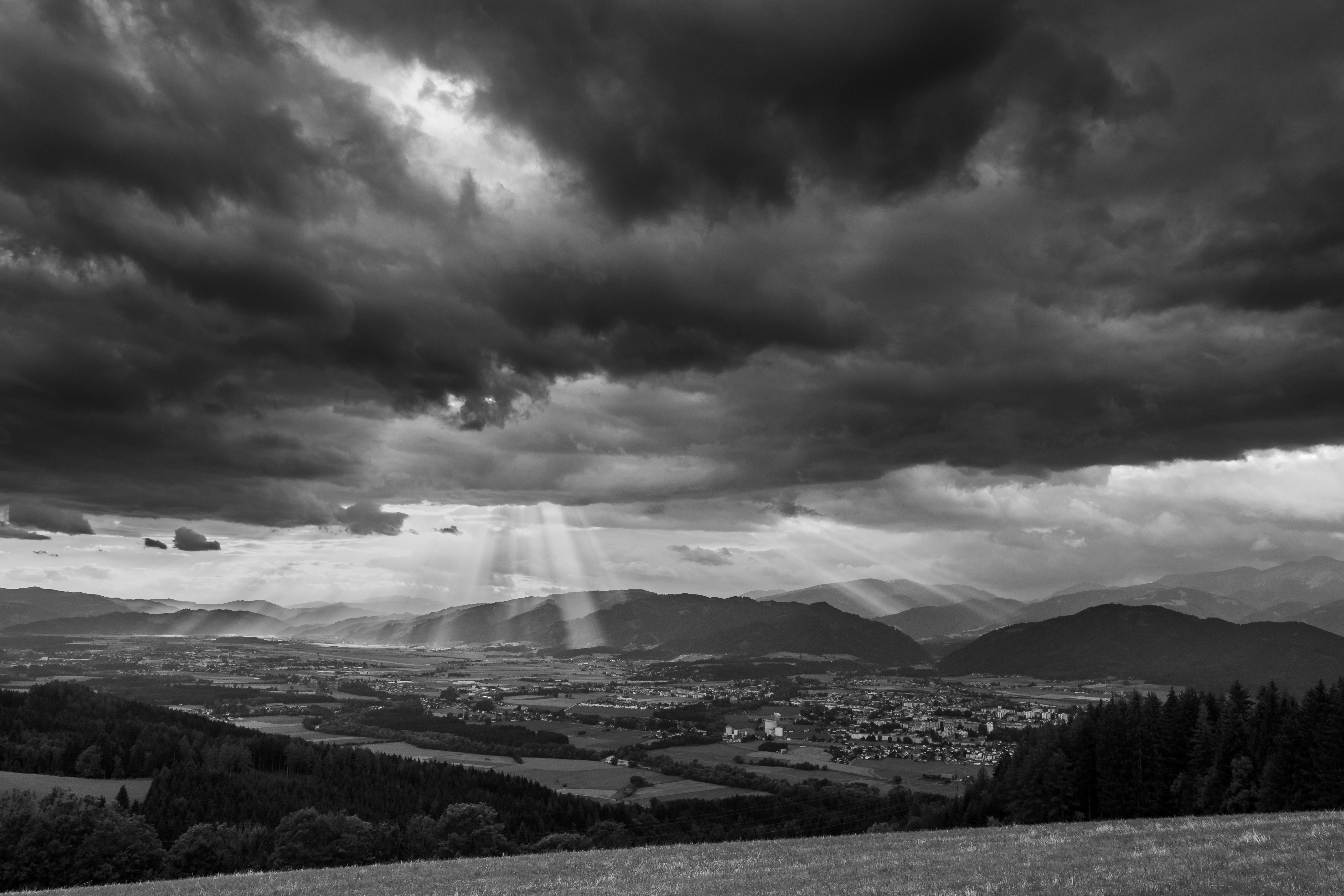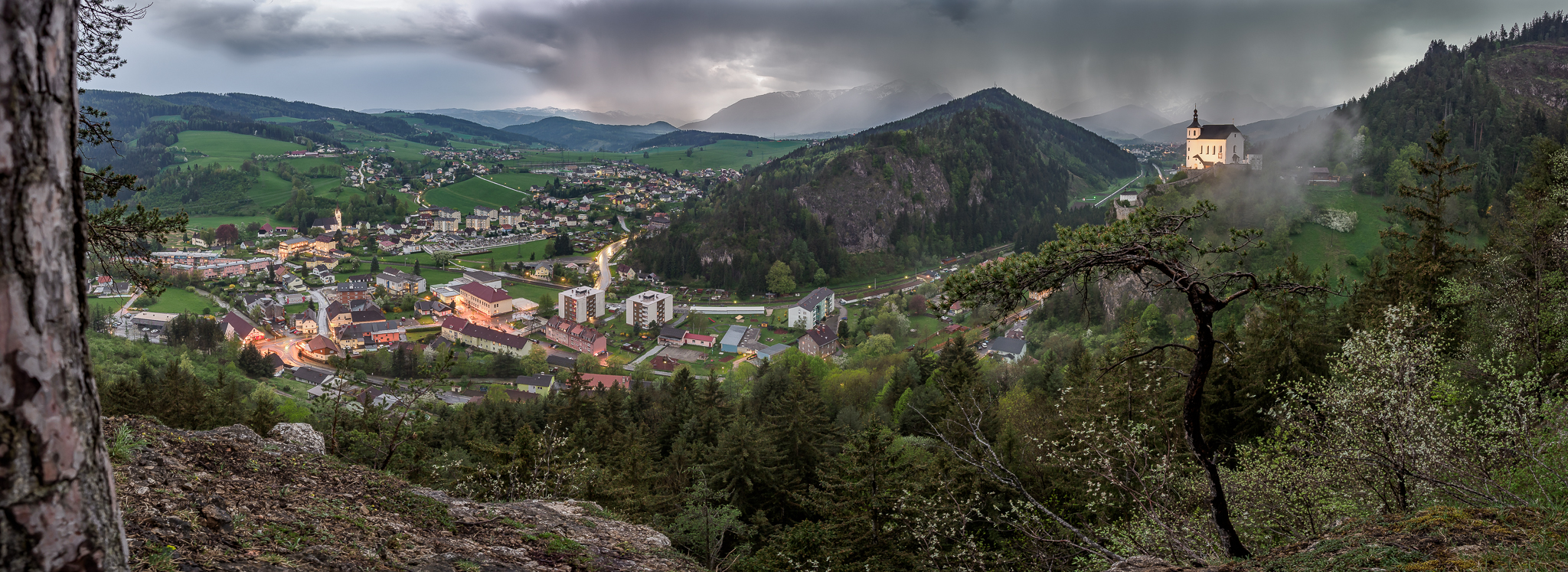 St. Peter/Freienstein vom Felsen aus gesehen während das nächste Gewitter herannaht.